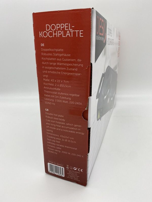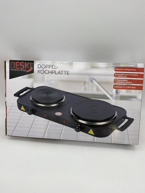 Deski Doppel Kochplatte 2 x 1000 Watt schwarz Kochfeld Doppelkochplatte Küche