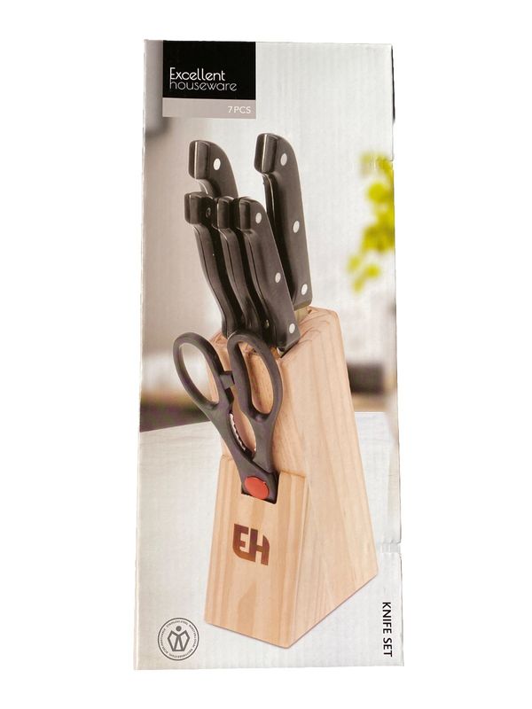 Küchenmesserset Messeret 7-teilig mit Messern Schere Halterung Holzblock